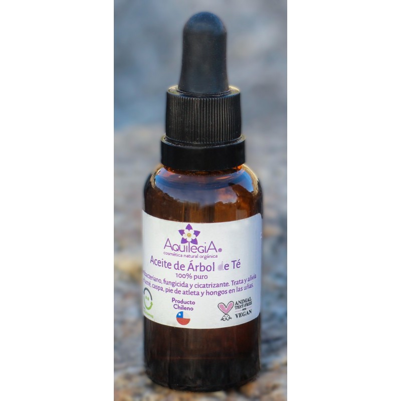 Aceite vegetal del arbol de té,´prensado en frio y 100% natural. Formato de vidrio de 30 ml.